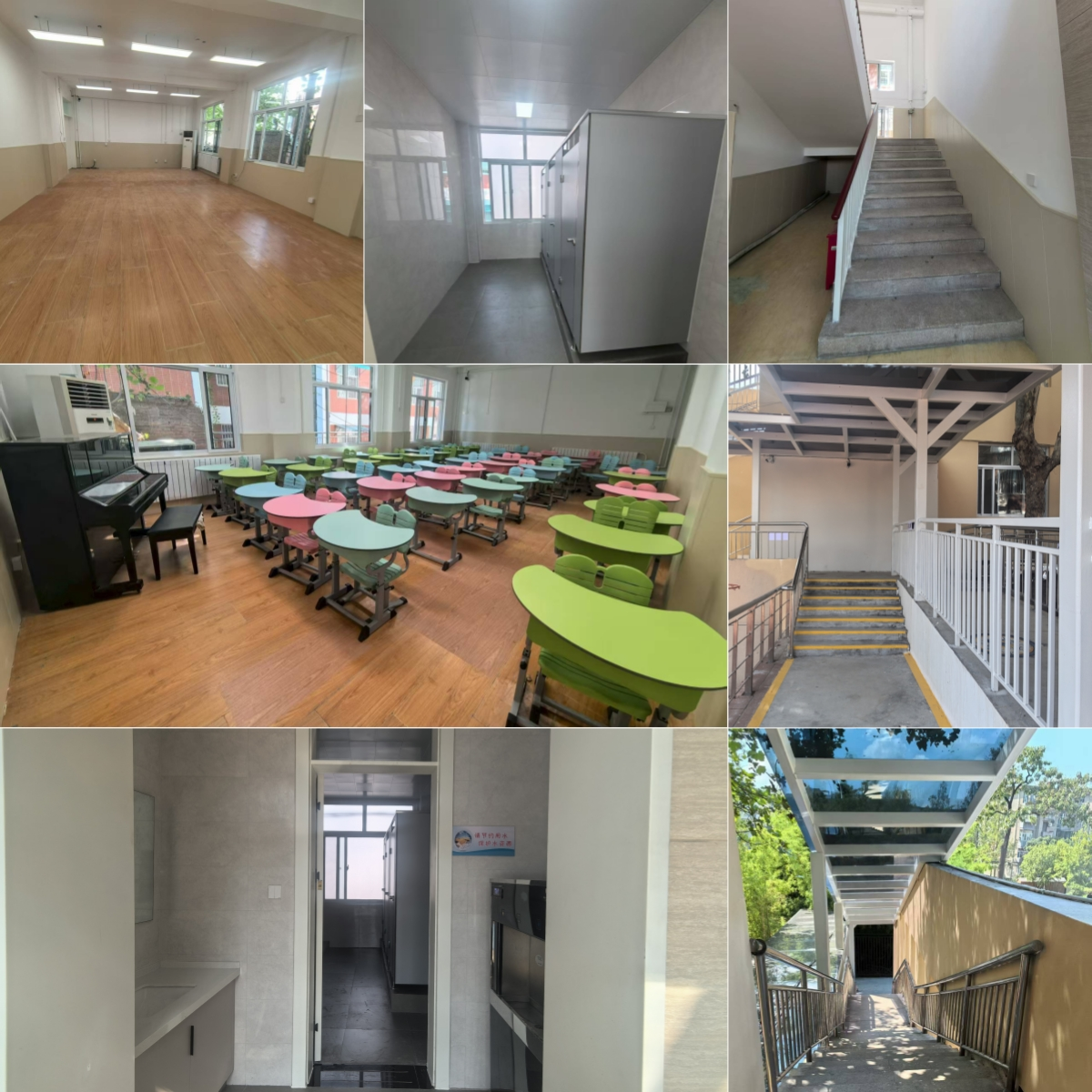 此次改造工程重点对附属小学音乐、科学、信息共6间专业教室、2间卫生间进行升级改造,填补了附属小学本部功能教室的缺失;室外新建钢结构风雨连廊,全程设置采光顶棚,极大的方便了附属小学学生跨园区上课。项目室内改造面积约350平方米,室外道路改造面积约150平方米。