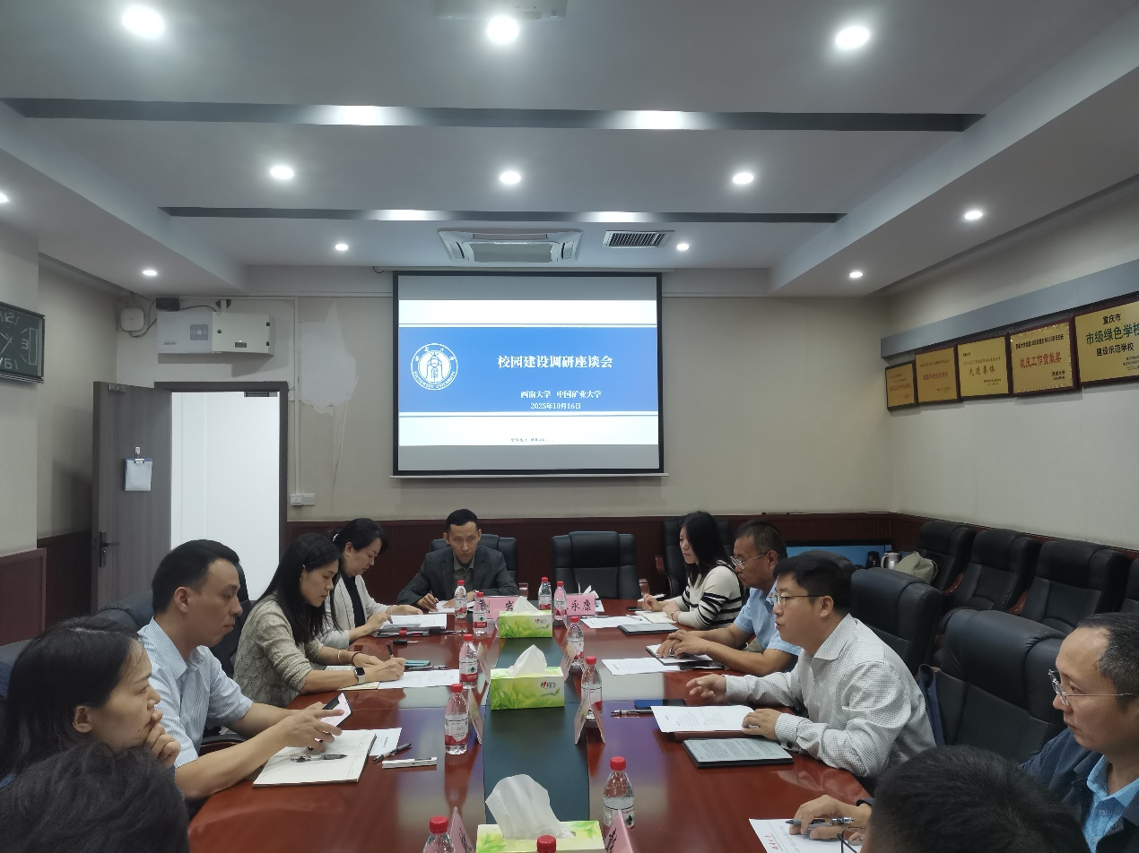 在西南大学,调研团队与相关部门围绕校园运维中的资源统筹与项目管理举行了座谈交流。双方就“两重”项目推进、老校区宿舍修缮改造、基建资金统筹与使用效益等共性问题交换意见,并对经营性用房、科研周转用房、家属区维修等不同类型校园修缮工作的责任划分与管理机制进行了深入研讨。彭威、郭卫兵结合工作实际,就物业服务标准、运行模式和监管考核等具体问题与对方进行了对口交流,并重点学习了西南大学将校园绿化景观深度融入“环境育人”体系的宝贵经验,包括主题园区营造、劳动教育课程化及师生参与设计等创新举措。